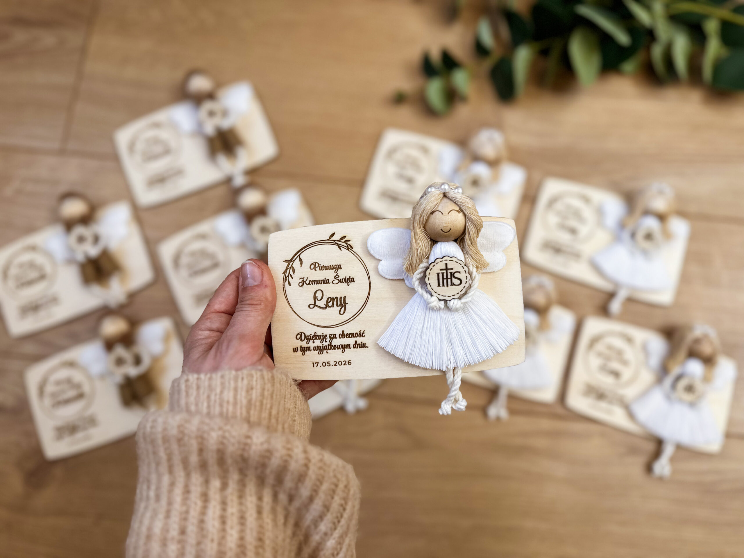 Podziękowania dla gości komunijnych – magnes – aniołek dziewczynka