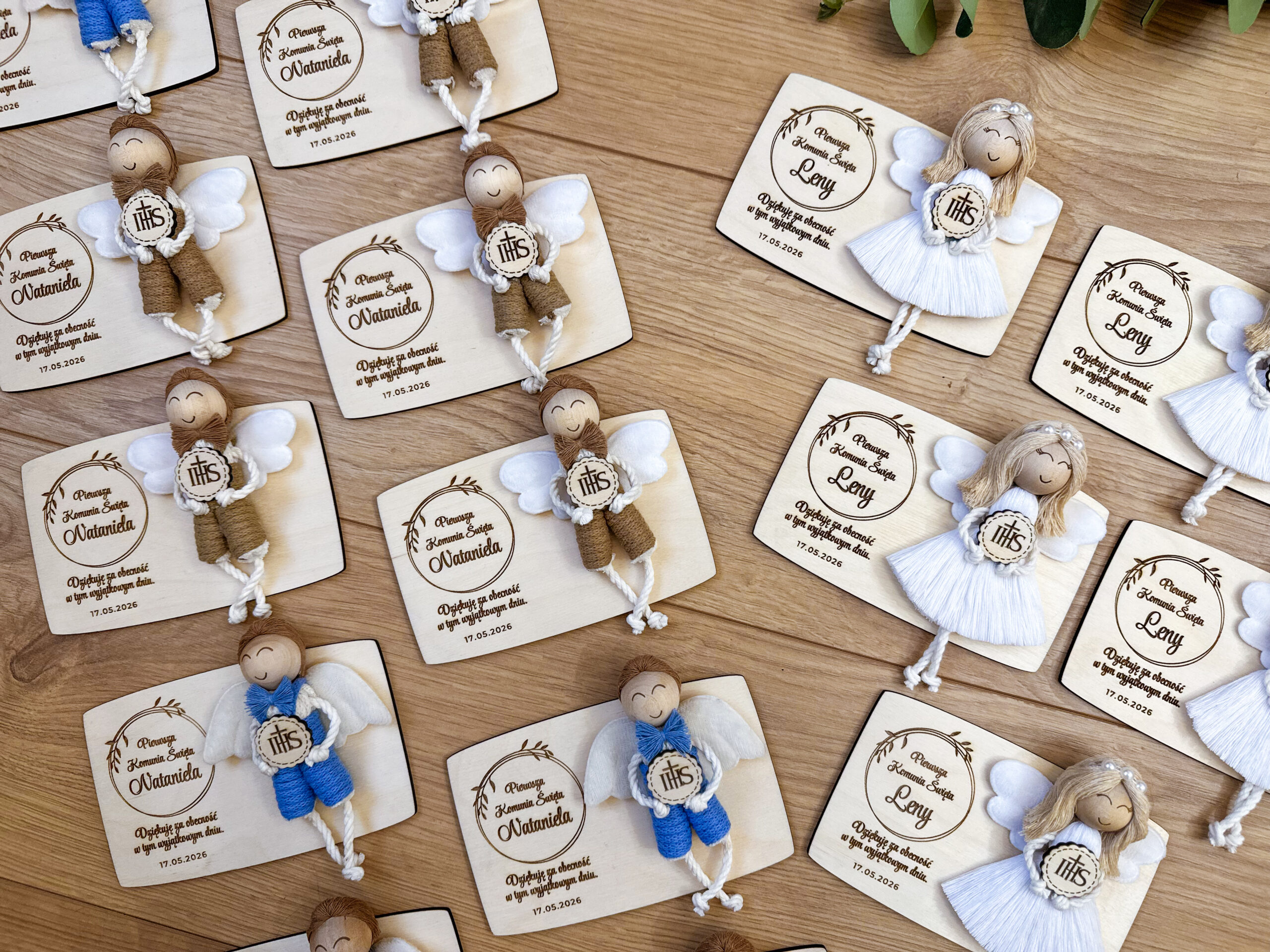 Wyjątkowe personalizowane tabliczki z aniołkiem w formie magnesu na lodówkę.
