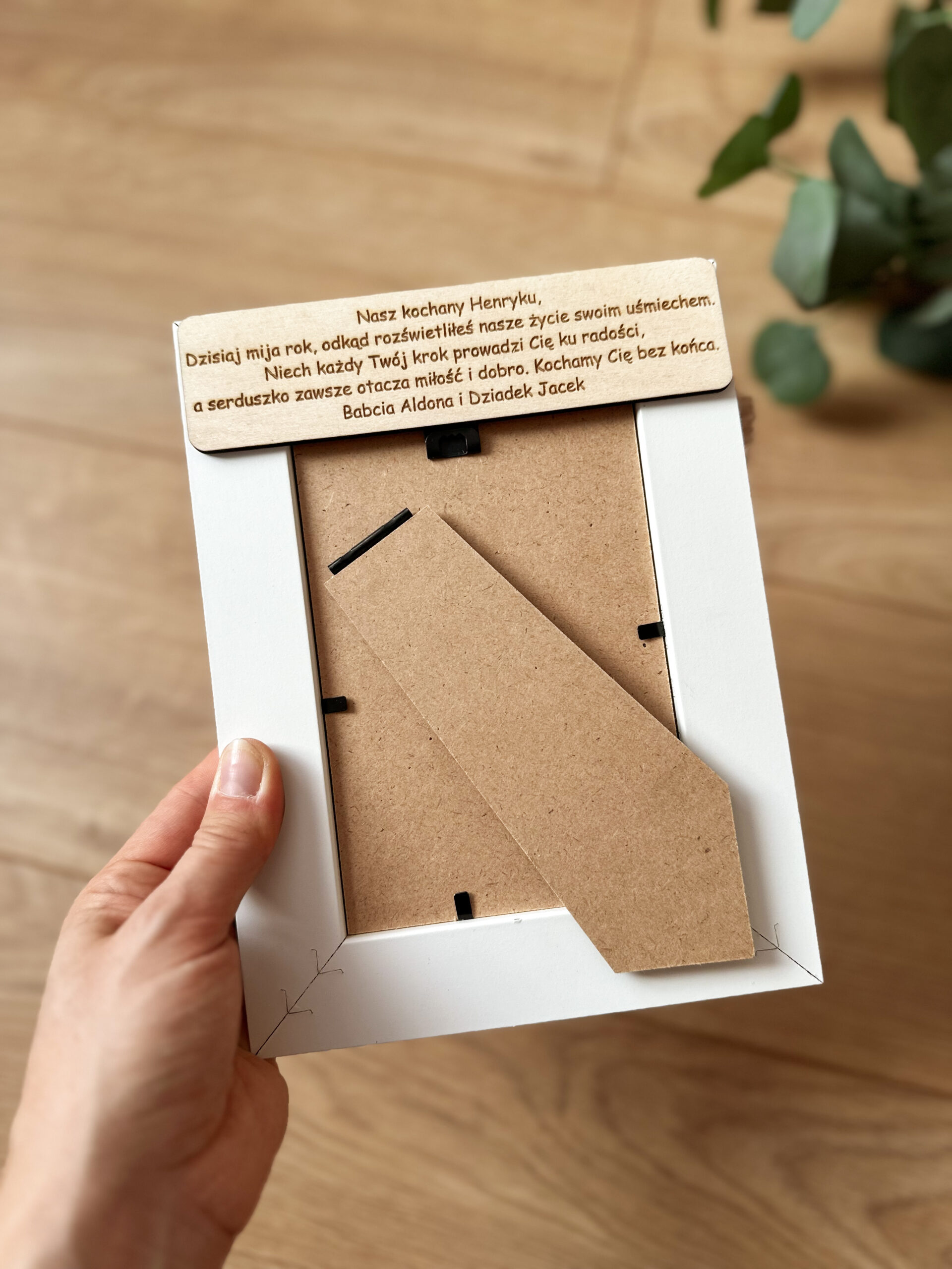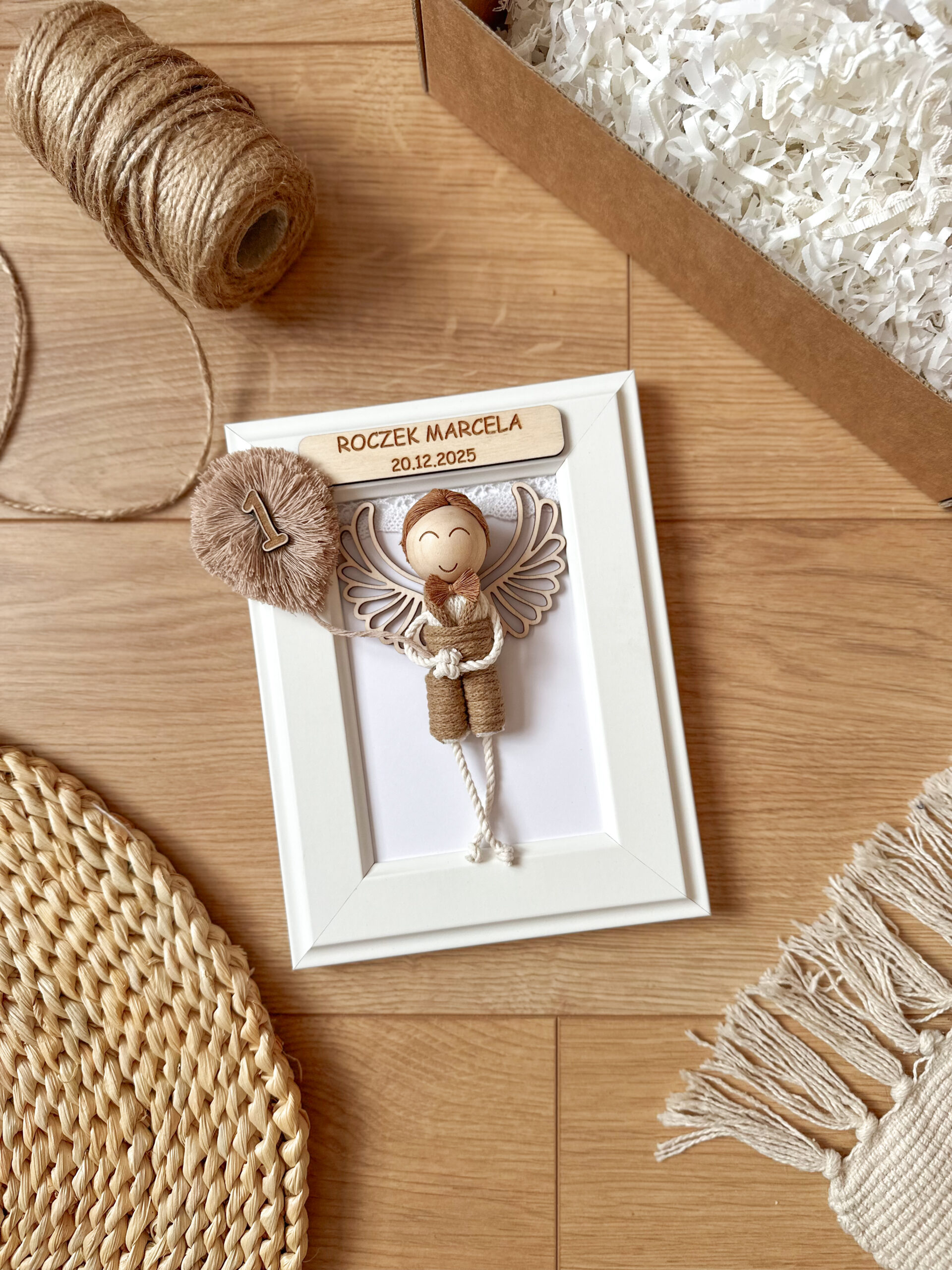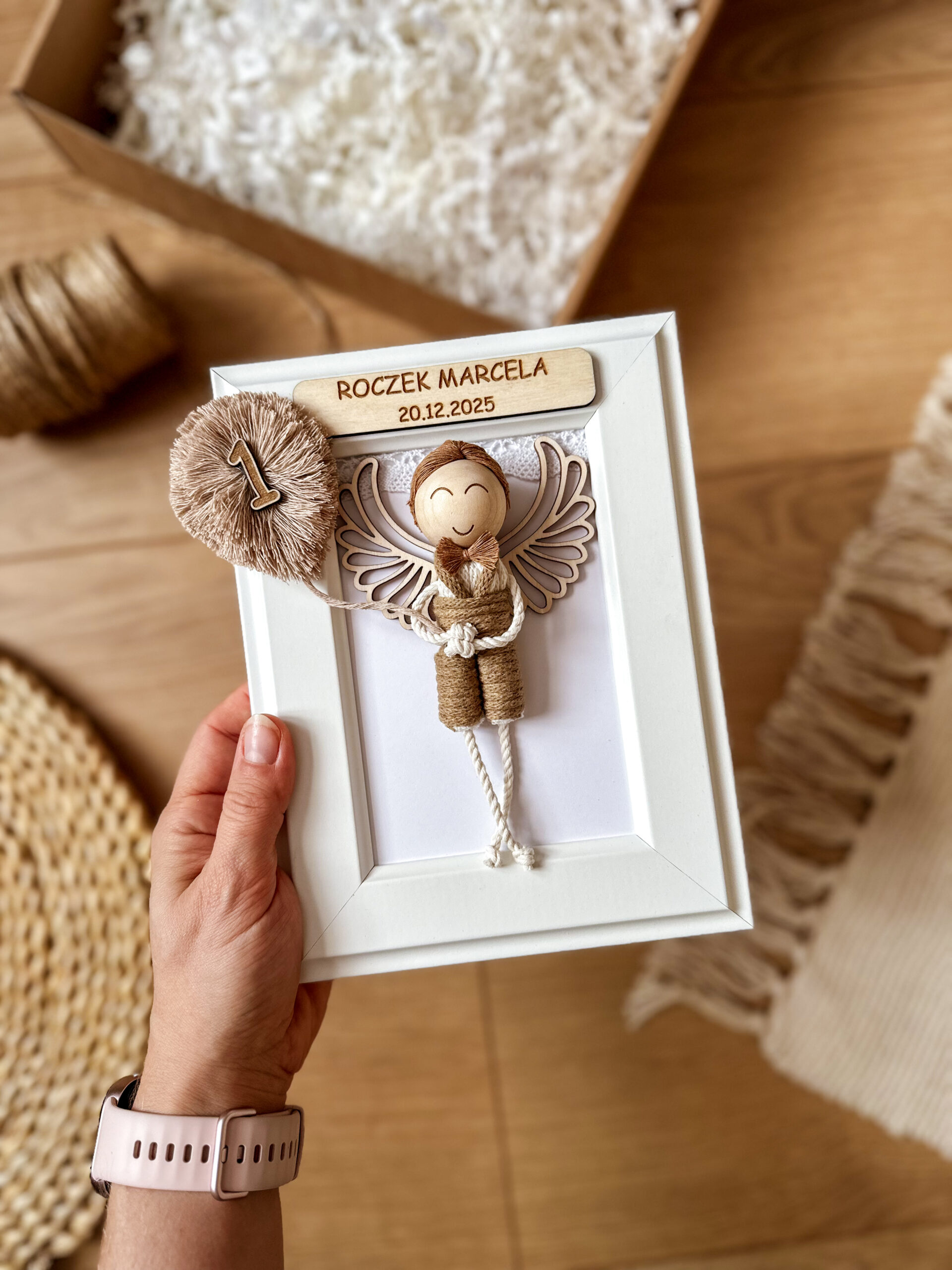 Piękna pamiątka – aniołek w ramce dla dziecka z okazji roczku – idealna na prezent.
